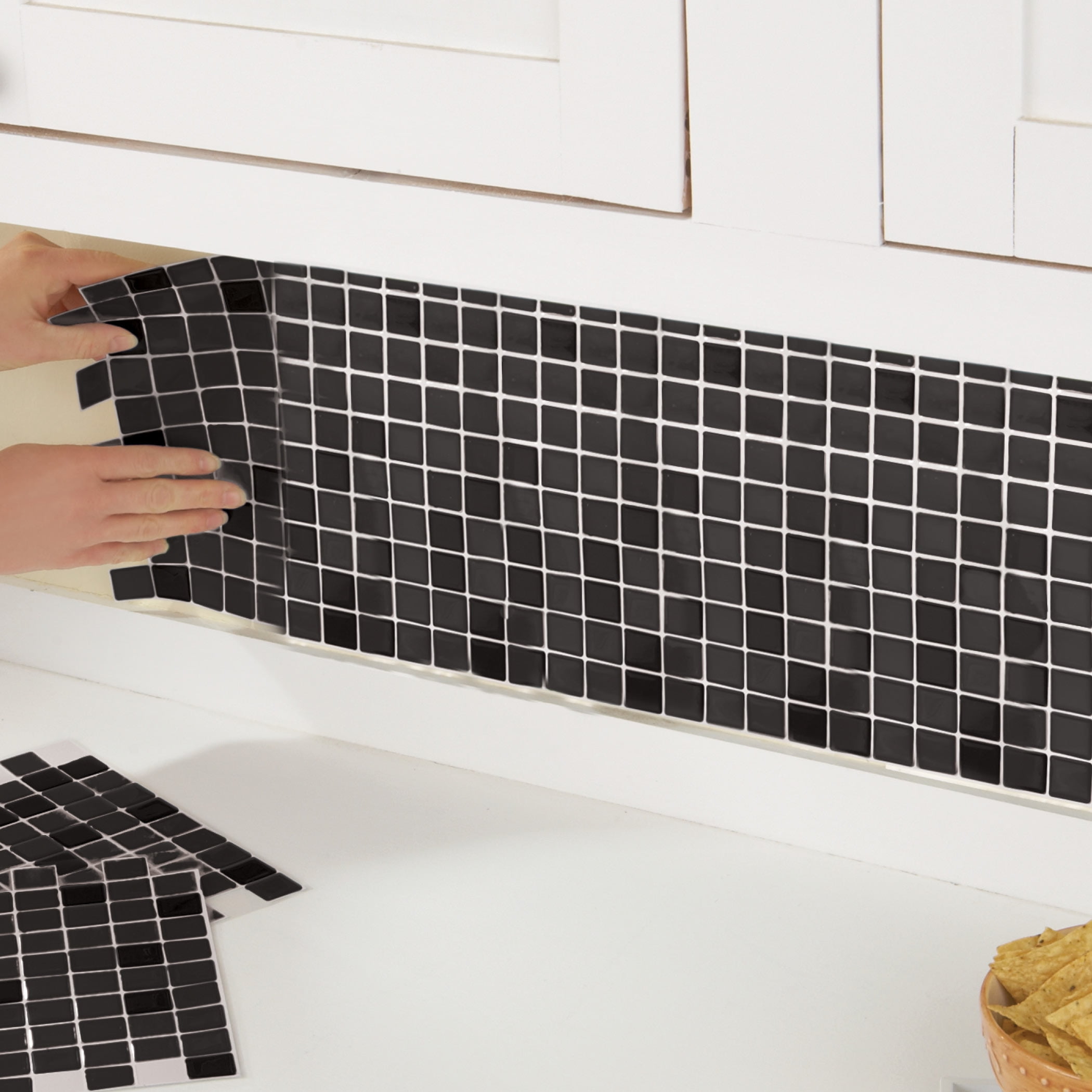 Collections Etc Mosaic Backsplash Tiles Set Of 6 Solid Black Solid Black Walmart Com